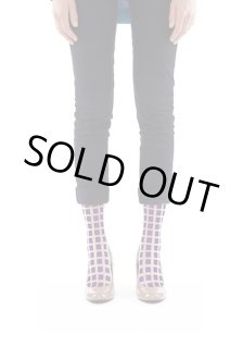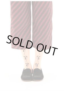 ● 光沢感のある上質なフロッキー加工を施したストッキングは、柄のグラフィックを崩さず、そのまま着用出来ます。独自開発によって可能となった、エッジの効いたプリントに発色の良いフロッキーが特徴です。 ● ソックスタイプのフロッキーストッキングは膝下丈で、お腹周りの締め付けを気にせずお履き頂けます。ちょっと足首から柄を覗かせるだけでも、全体の雰囲気が変わってくるので、普段のスタイリングに重宝する一足です。 ______________________________________________