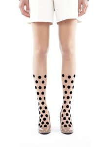 光沢感のある上質なフロッキー加工を施したストッキングは、柄のグラフィックを崩さずそのまま着用出来ます。独自開発によって可能となった、エッジの効いたプリントに発色の良いフロッキーが特徴です。